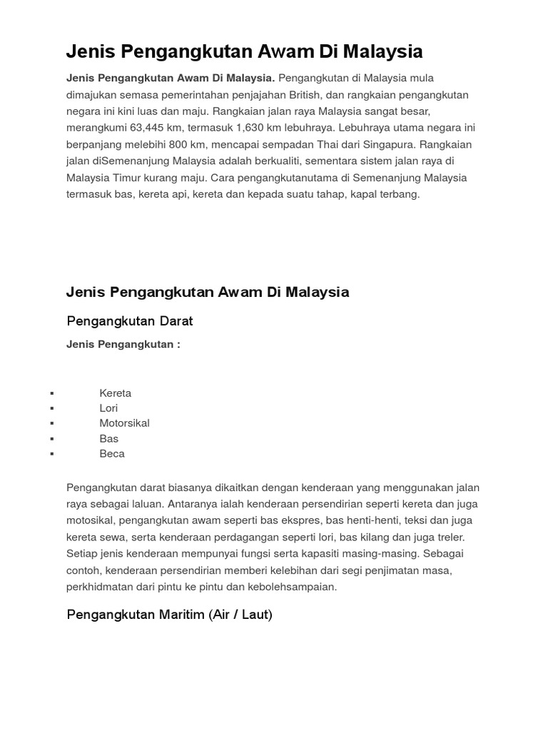 Related : Jenis Jenis Pengangkutan Awam : Baca tips saya yang lepas:.